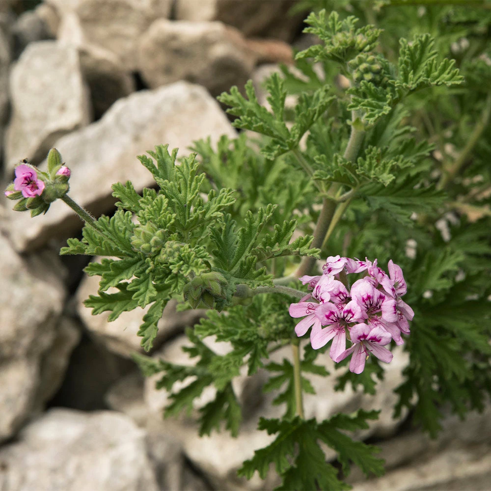 Citronella (Pelargonium citronellum) is widely favored geranium thanks to its wonderful citrusy scent. It will give you an array of fuzzy, textured foliage that when crushed sends off a heavenly aroma. The plant grows to a height of about 2-3 feet and is best suited for USDA growing zones 9-11 as an evergreen perennial but can also be successfully grown in pots/planters if located in colder areas of the U.S. Citronella is also a great contrasting texture to gardens.