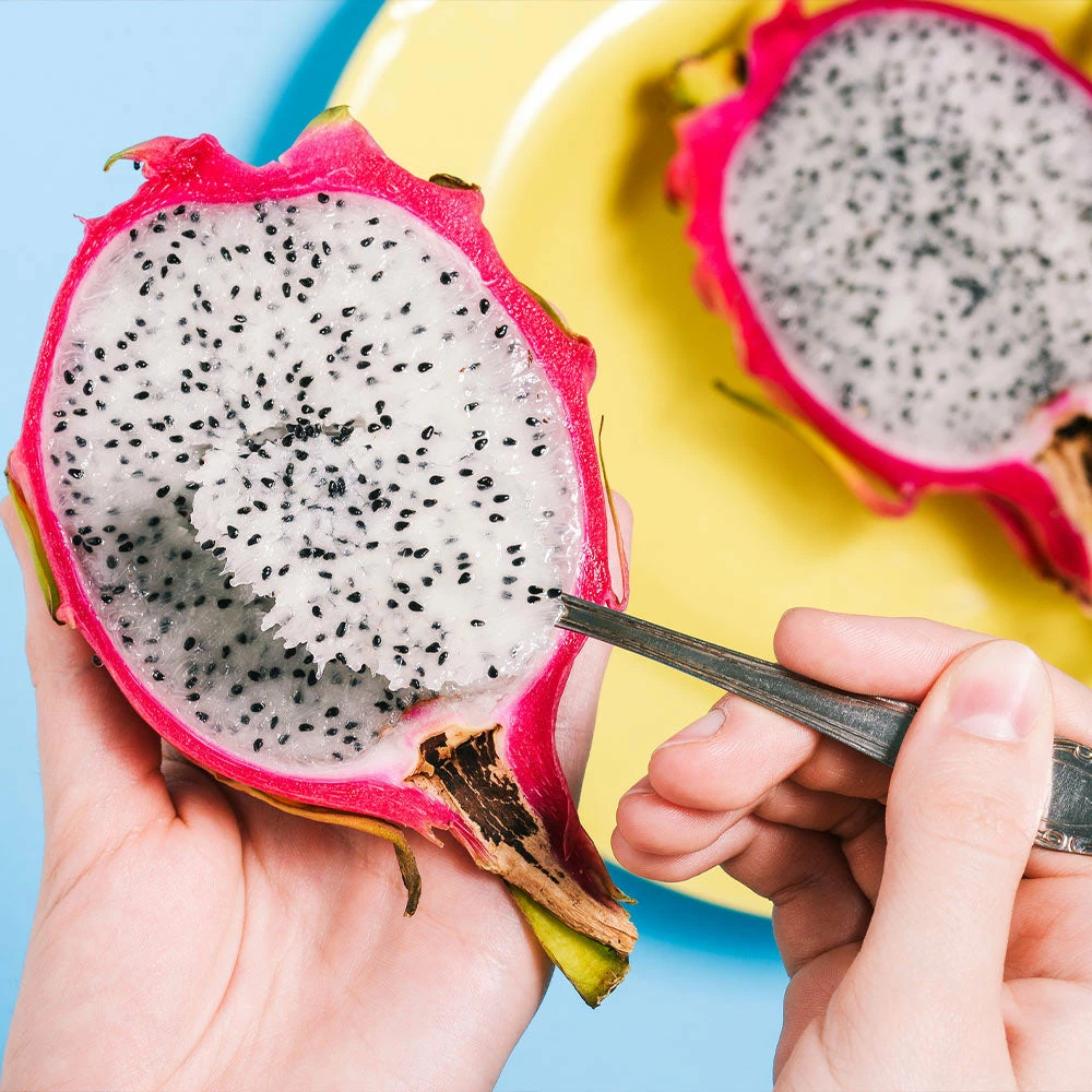 Bring beauty and intrigue to your garden with the Dragon Fruit Cactus Tree. Its winding cactus vines and large, white blossoms are enough to make it stand out in your backyard oasis, but the real star is its delicious fruit. From its neon pink skin to its milky white and black seeded flesh, everything about the Dragon Fruit is unique. Its flavor profile has notes of melon and pear, and the sweet and tart taste is simply delectable. Utilize your Dragon Fruit for homemade sorbets, smoothies, or refreshing tropical drinks to quench any thirst and boost your health.