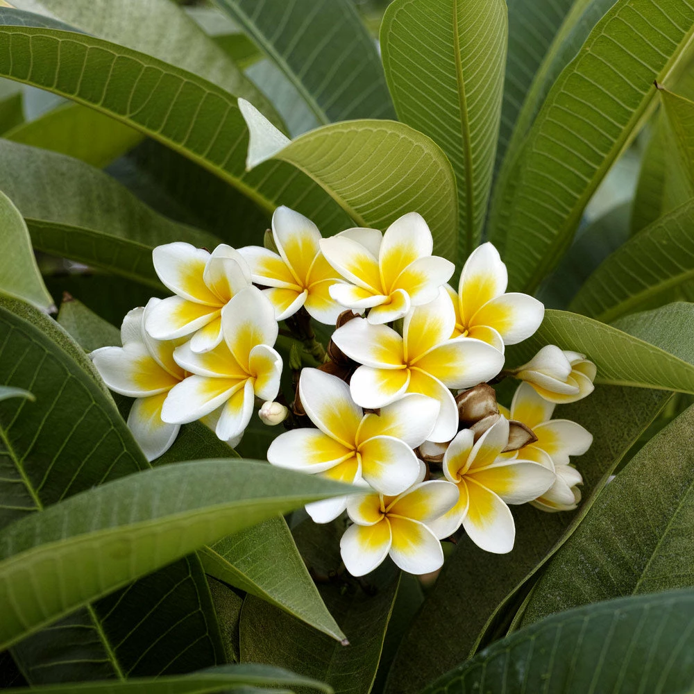 Plumerias, also known as Frangipani or the ‘lei flower’, are native to tropical areas like Hawaii…but you don’t have to live in a tropical climate to grow them. If you don’t live in southern Florida, simply place these Hawaiian plants in a container and bring it indoors in the colder months. Plumerias are tough, with a high level of drought and heat resistance and high salt tolerance. This makes them perfect for any location, including apartment terraces or suburban patios.