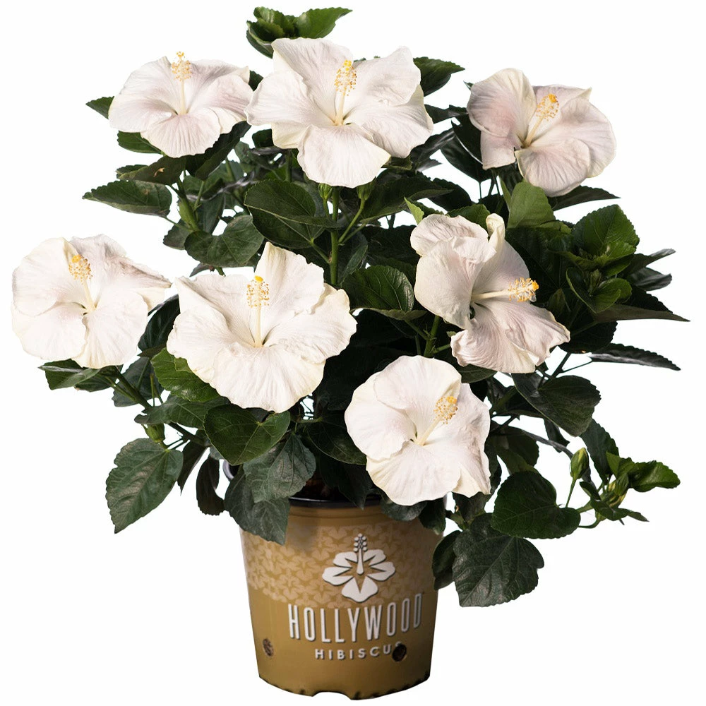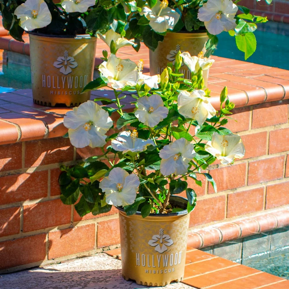 Creamy white blooms with large, velvety petals are the defining feature of the stunning Earth Angel Hollywood Hibiscus. Emerging in a sea of white each spring, it’s easy to see why this aptly named plant is a garden favorite.