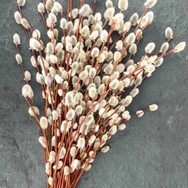 So, what is a Pussy Willow? The White Pussy Willow Shrub is unlike anything else. Dark, tall branches shoot upright from the roots and on them grow beautiful silvery-white blooms called catkins. You’ve probably seen the branches and catkins in floral arrangements: The slim branches and fuzzy blooms add interesting contrast against bright flowers.